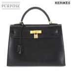 美品 エルメス HERMES ケリー 32 ボックスカーフ ブラック ハンド バッグ 外縫い □F刻印 ゴールド 金具 Kelly 32 90303743
