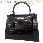 HERMES(エルメス) ケリー25 (外縫い) ブラック黒 ニロティカス クロコダイル シルバー金具 W刻印 ハンドバッグ 40802189598【アラモード】