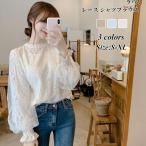 爆買 ブラウス レディース ボリューム袖 トップス レース シャツ 長袖 花柄 体型カバー プルオーバー おしゃれ 春夏 無地 新作 可愛い