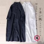 爆買 シャツワンピース レディース ロングワンピ リネン風ワンピース ライトアウター ボタン留め 折り襟 バックタック ゆったり おしゃれ