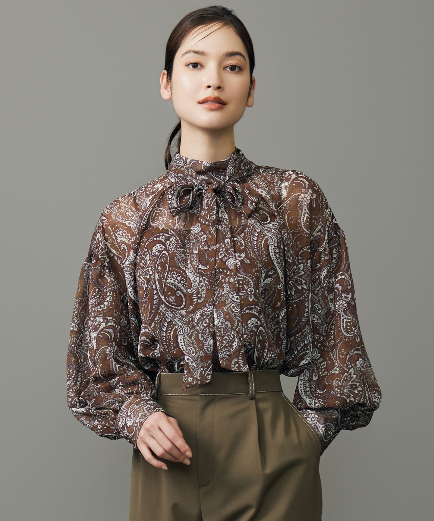 自由区 L(ジユウク エル)/ペイズリープリントボウタイ ブラウス