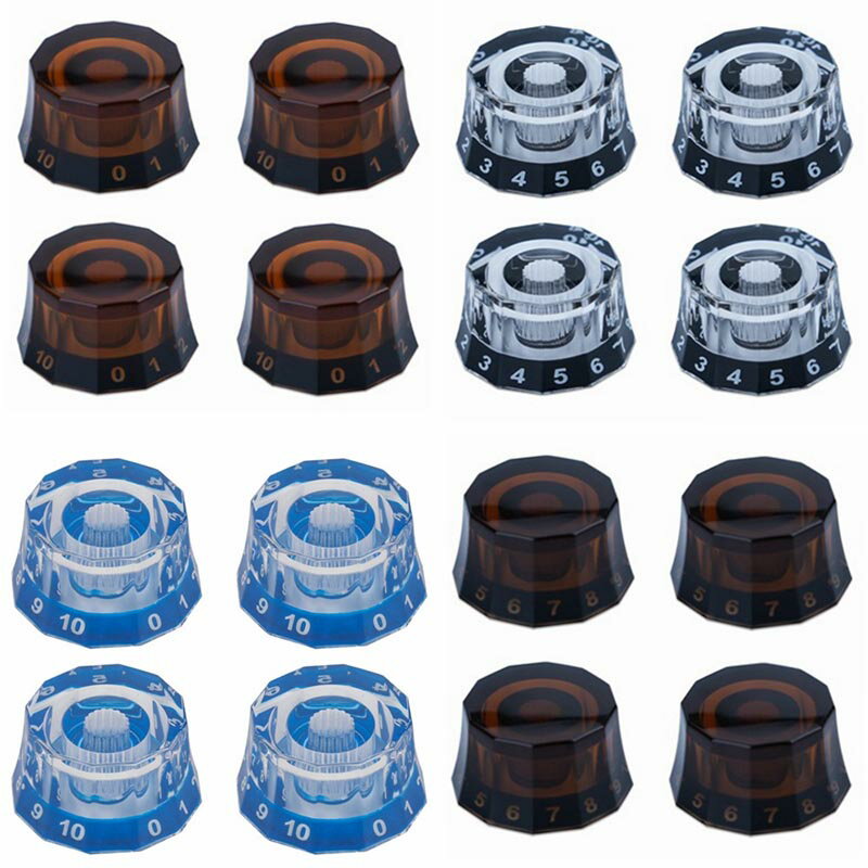 4PCSギターノブラウンドボリュームトーンコントロールノブ交換速度コントロールノブエレクトリックベースギターアクセサリー用 4個セット