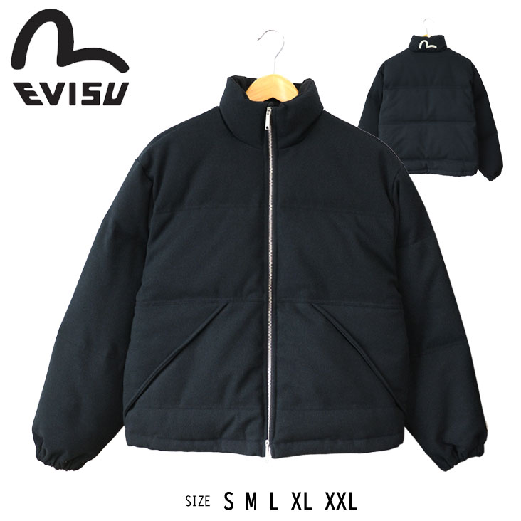EVISU エヴィス ダウンジャケット 保温性 防寒 暖かい 絞れる ドローコード ダブルジッパー ロゴ刺繍 丈夫 メンズ レディース 大きいサイズ ブランド カジュアル 冬 雪かき おしゃれ かっこいい ゆったり トレンド アウトドア 登山 エビス 厚手 しっかり ブラック 黒