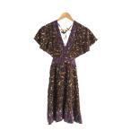 EVISU HERITAGE エヴィス ヘリテージ 【lay1614M】 和柄シルクワンピース 半袖 ひざ丈 総柄 ブラウン パープル Mサイズ レディース CH