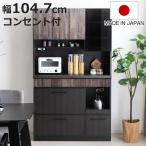 食器棚 RESE Dタイプ 幅104.7cm 天然木 日本製 アカシア ( 無垢材 2口コンセント付き ゴミ箱上ラック 作業台 可動棚 スライドレール )