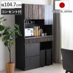 食器棚 RESE Bタイプ 幅104.7cm 天然木 日本製 アカシア ( 無垢材 2口コンセント付き ゴミ箱上ラック 作業台 可動棚 スライドレール )