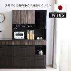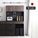 キッチンボード 収納 カップボード 幅105 食器棚 家電収納 ダストボックススペース 炊飯器 レンジ台 完成品 ブラウン