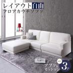 コーナーソファ レイアウト自由自在 ユニットデザインコーナーソファセット ソファ&オットマンセット コンパクトタイプ 3P