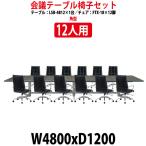 会議用テーブルセット 12人用 LSB-4812SET ミーティングテーブル LSB-4812 (幅4800x奥行1200x高さ720mm) 1台 + 椅子 FTX-18 12脚 大型