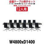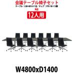 会議用テーブルセット 12人用 LSB-4814RSET ミーティングテーブル LSB-4814R (幅4800x奥行1400x高さ720mm) 1台 + 椅子 FTX-18 12脚 大型