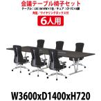 会議用テーブルセット 6人用 LSC-3614SET ミーティングテーブル LSC-3614 幅3600x奥行1400x高さ720mm 1台 + 椅子 CF-7C 6脚 会議テーブルセット