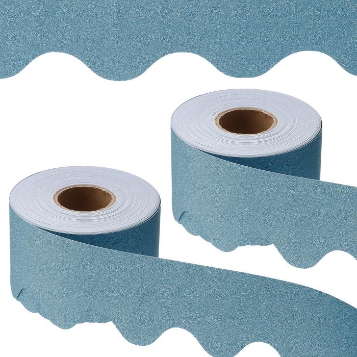 PATIKIL ピカピカの掲示板ボーダー、2ロール65.6フィートのポスターチョークボードコルク装飾トリム波状ボーダーウォールデ コレーション、教室オフィスロッカー用、ネイビーブルー