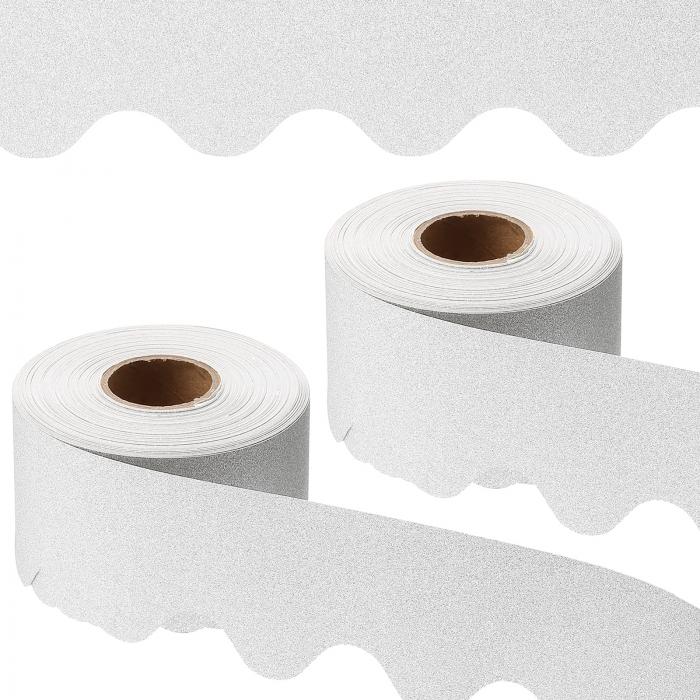PATIKIL ピカピカの掲示板ボーダー、2ロール65.6フィートのポスターチョークボードコルク装飾トリム波状ボーダーウォールデ コレーション、教室オフィスロッカー用、シルバートーン