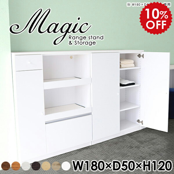 キャビネット 木製 北欧 ラック キッチンボード 180cm幅 おしゃれ 収納棚 扉付き 扉付き棚 シェルフ キッチン収納 作業台 ホワイト 白 完成品 コード穴 書庫 オフィス収納 本収納 オフィス家具 レンジボード 食器棚 レンジ台 レンジラック 【幅180奥行50高さ120cm】 ☆