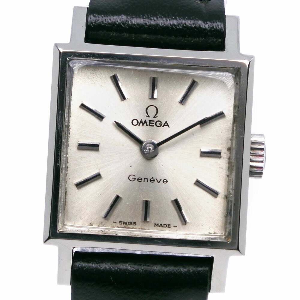 【スーパーセール10%OFF対象】オメガ OMEGA ジュネーブ 腕時計 cal.1070 ステンレススチール×型押しレザー 手巻き シルバー文字盤 Geneva レディース【中古】
