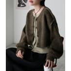 カーディガン 「forksy.」ミックス起毛レイヤード配色ショートニットカーディガン レディース