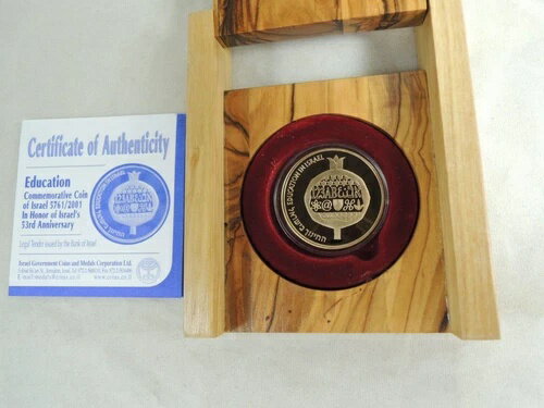 2001年 イスラエル 53周年記念 教育コイン 1/2オンス 純金 + オリーブウッドボックス、COA