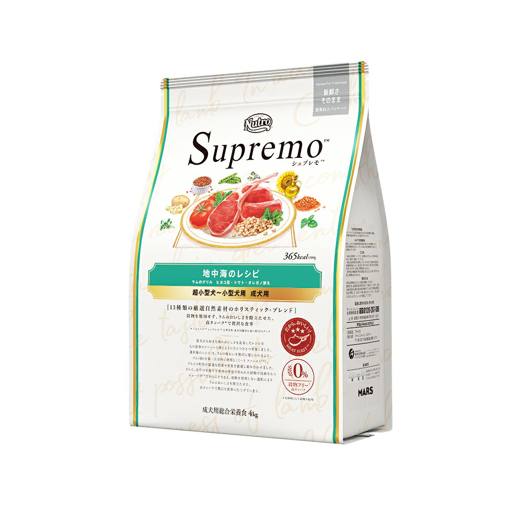ニュートロ シュプレモ 超小型犬〜小型犬用 成犬用 地中海のレシピ ラムのグリル ヒヨコ豆・トマト・オレガノ添え 4kg 関東当日便