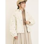 ジャケット ノーカラージャケット 小花総刺繍中綿ジャケット レディース