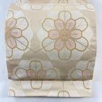 美品 袋帯 逸品 人間国宝 北村武資 落款あり 花柄 亀甲 金銀糸 薄オレンジ 六通 正絹 中古