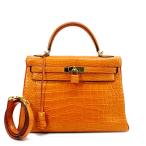 HERMES エルメス ハンドバッグ ケリー32 内縫い クロコダイル(アリゲーター) オレンジ/ゴールド金具 □R刻印
