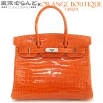 エルメス HERMES バーキン30 □F刻印 オレンジ シルバー金具 ポロサス クロコダイル ハンドバッグ レディース 015000255