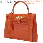 HERMES エルメス ハンドバッグ ケリー32 内縫い クロコダイル(アリゲーター) オレンジ/ゴールド金具 □R刻印