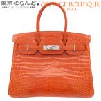 エルメス HERMES バーキン30 □F刻印 オレンジ シルバー金具 ポロサス クロコダイル ハンドバッグ レディース 015000255