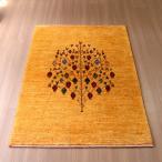 【15%OFFクーポン対象】ギャッベ イラン産手織り ノウバフト 131×85cm イエローオレンジ ザクロの実をつけた生命の木