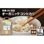 ふるさと納税 【先行予約】【12ヶ月連続お届け】【令和8年産 新米】有機JAS認証 オーガニックコシヒカリ 玄米 5kg×1袋×12ヶ月(計60.. 福井県南越前町