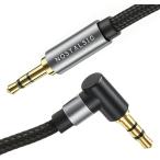 3.5mm オーディオケーブル 片側L型 1m AUX ステレオミニプラグ 高耐久 ナイロン編組 しなやかで絡まりにくい 金メッキ