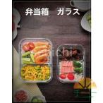 お弁当箱 ランチボックス 弁当箱 耐熱 耐冷 ガラス 保存容器 クリア 4面ロック密封 オーブン 電子レンジ 冷蔵庫 食洗器対応 二つ仕切り