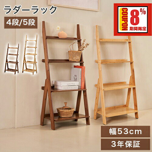 8%OFF+P2倍 27日迄【3年保証・レビュー特典】ラダーラック 壁面収納 4段 棚 シェルフ 竹 5段 ディスプレイラック 玄関 壁掛け収納 北欧風 飾り棚 本棚 コーナー おしゃれ オープンラック 食器棚 シンプル 階段型 ハシゴ型 茶色 ガーデン ブラウン ナチュラル レンジ RSL