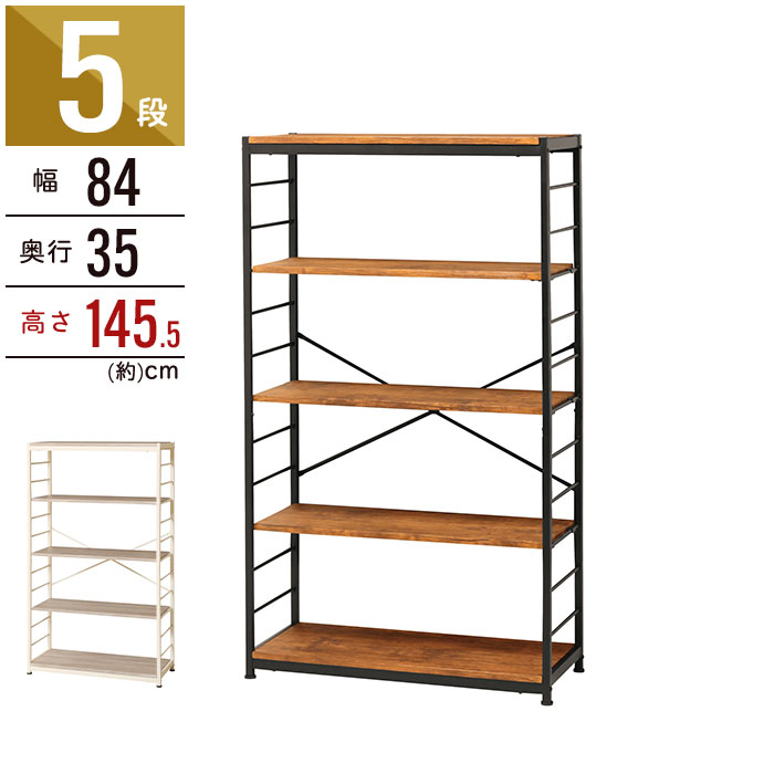 【期間限定!15%OFF】 オープンラック 収納ラック 5段 約 幅80 奥行30cm 木製 木目 おしゃれ 背板なし 薄型 フレーム スチール オープンシェルフ マルチラック リビング収納 キッチンラック ヴィンテージ風 書棚 本棚 可動棚 ホワイト/オーク/ブラウン LCB642313