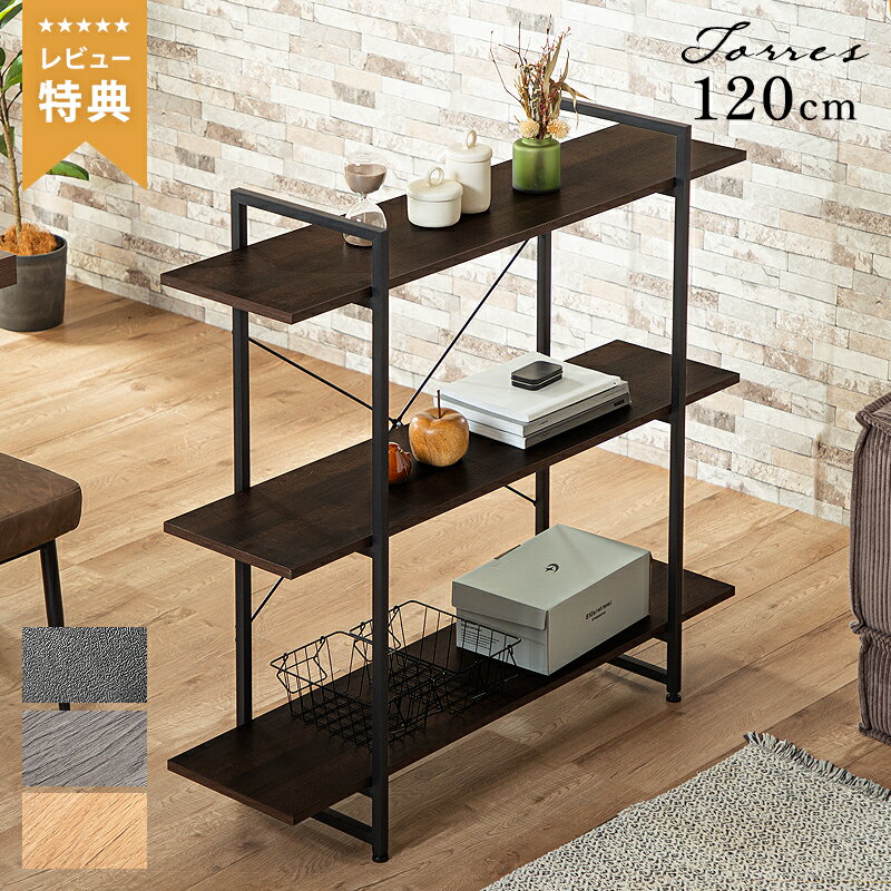 25%OFF 12/4 20時から★ オープンラック 3段 ラック 幅120 奥行30 木目 石目 アイアン オープンシェルフ スチールラック ディスプレイラック 収納 棚 本棚 収納ラック 商品棚 収納棚 キャビネット シェルフ スチール 木製 ナチュラル おしゃれ 北欧 スリム トレス