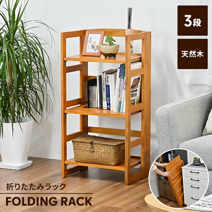【楽天スーパーSALE10%OFF】ラック シェルフ 折りたたみ 天然木 3段 幅44 オープンラック マルチラック 本棚 収納棚 ナチュラル シンプル おしゃれ
