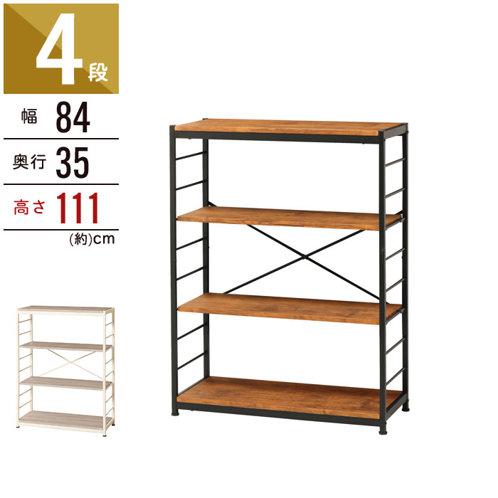 【楽天スーパーSALE10%OFF】ラック 4段 幅84 奥行35 高さ111cm オープンラック 木製棚板 ウッドシェルフ ディスプレイラック スチールラック 棚 シェルフ 収納 リビング キッチン ダイニング 子供部屋 キッチン 洗面所 新生活 一人暮らし