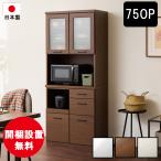 日本製 開梱設置無料 薄型 奥行42cm ダイニングボード 幅75cm ガラス扉 オープンラック 深型引出し 白木目 ウォールナット 白鏡面 MK-75OP