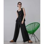 【店内全品対象★25%OFFクーポン配布中★先着1,000名限定 10/24 20時開始】サロペット オールインワン オーバーオール レディース 麻調合繊 テーラード 夏 パンツ つなぎ チャコール/杢グレー | M/L/LL | ニッセン nissen