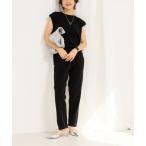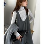 先着100名様【店内全品50%OFFクーポン】10/24 20時~■ショルダーリボン付オールインワン オールインワン レディース ロング丈 レイヤード シンプル テーパードパンツ リボン Vネック