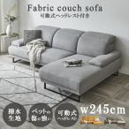 カウチソファ 3人掛け 幅245cm ソファ カウチ ヘッドレスト 可動式 おしゃれ 北欧 背もたれ 撥水加工 ファブリック 猫キズ ソファー ウレタンフォーム アイアン
