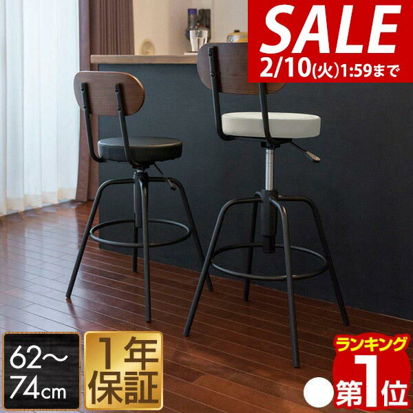 カウンターチェア バーチェア 背もたれ付き 回転 ガス圧昇降 2脚セット 高さ調整 座面高61〜82cm PUレザー/ヴィンテージ加工 1年保証 送料無料