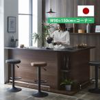 カウンターテーブル バーカウンター バーテーブル 収納 間仕切り キッチン収納 自宅 幅120cm+幅150cm+コーナー 大川家具