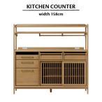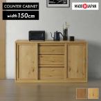 食器棚 ロータイプ レンジ台 キッチンカウンター 国産 日本製 150cm ナチュラル ブラウン 木製 天然木 無垢材