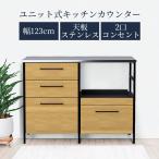 キッチンカウンター レンジ台 幅120 カウンター 収納 2口コンセント ステンレス天板 オーク材 突板 ウレタン塗装 フルオープンレール