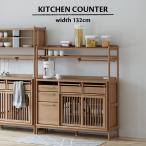 食器棚 カウンター レンジ台 キャビネット 引き出し コンセント付き 幅132cm 木製 オーク ナチュラル おしゃれ 北欧 モダン