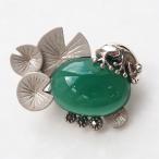 在庫完売後21,300円【碌山】 シルバーカエル グリーンアゲートブローチ シルバーグリーンアゲートフロッグ かえるは縁起物として人気です 蓮の葉とカエルギフト プレゼント ラッキーアイテム アンティーク調