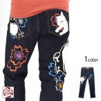 参丸一×今昔 蛙×狐照れ隠しデニムパンツ 参丸一 SM-30843 和柄 刺繍 ジーンズ カエル キツネ コラボ