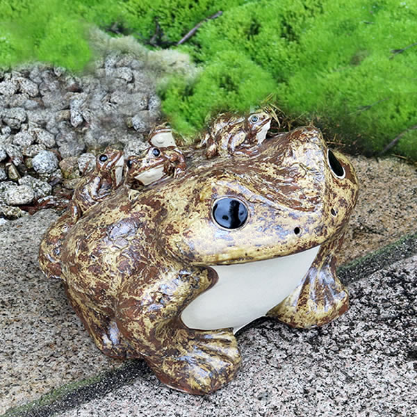 【12月1日限定11%OFFクーポン配布中】信楽焼 18号五匹子付き蛙 (むかえる) お庭に玄関先に陶器蛙 やきもの 陶器 しがらきやき 蛙 陶器かえる 信楽焼カエル ka-0062