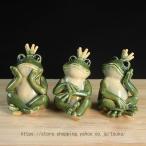 カエルの置物 陶器 3匹セット 動物 雑貨 蛙 新年 置物 インテリア オブジェ 縁起物リビングの装飾 退職 プチギフト お歳暮 お年賀 ギフト 誕生日 結婚祝い